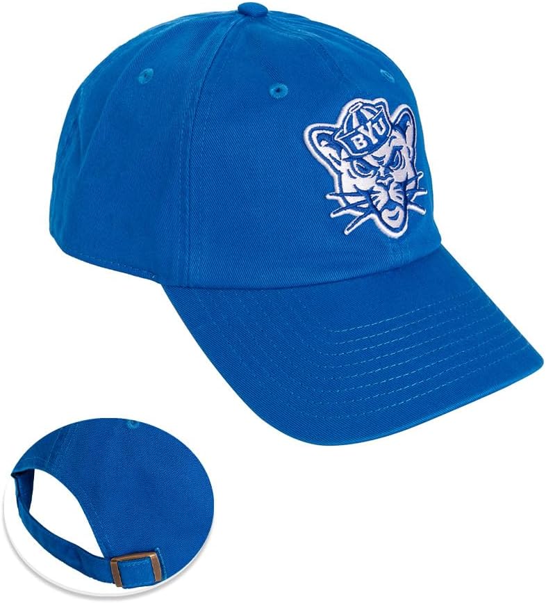 Desert Cactus Brigham Young University Baseball Hat BYU Cougars Cougs Brimmed Embroidered Hats Cap Adjustable Cloth Strap Adult (Style D1) Blue