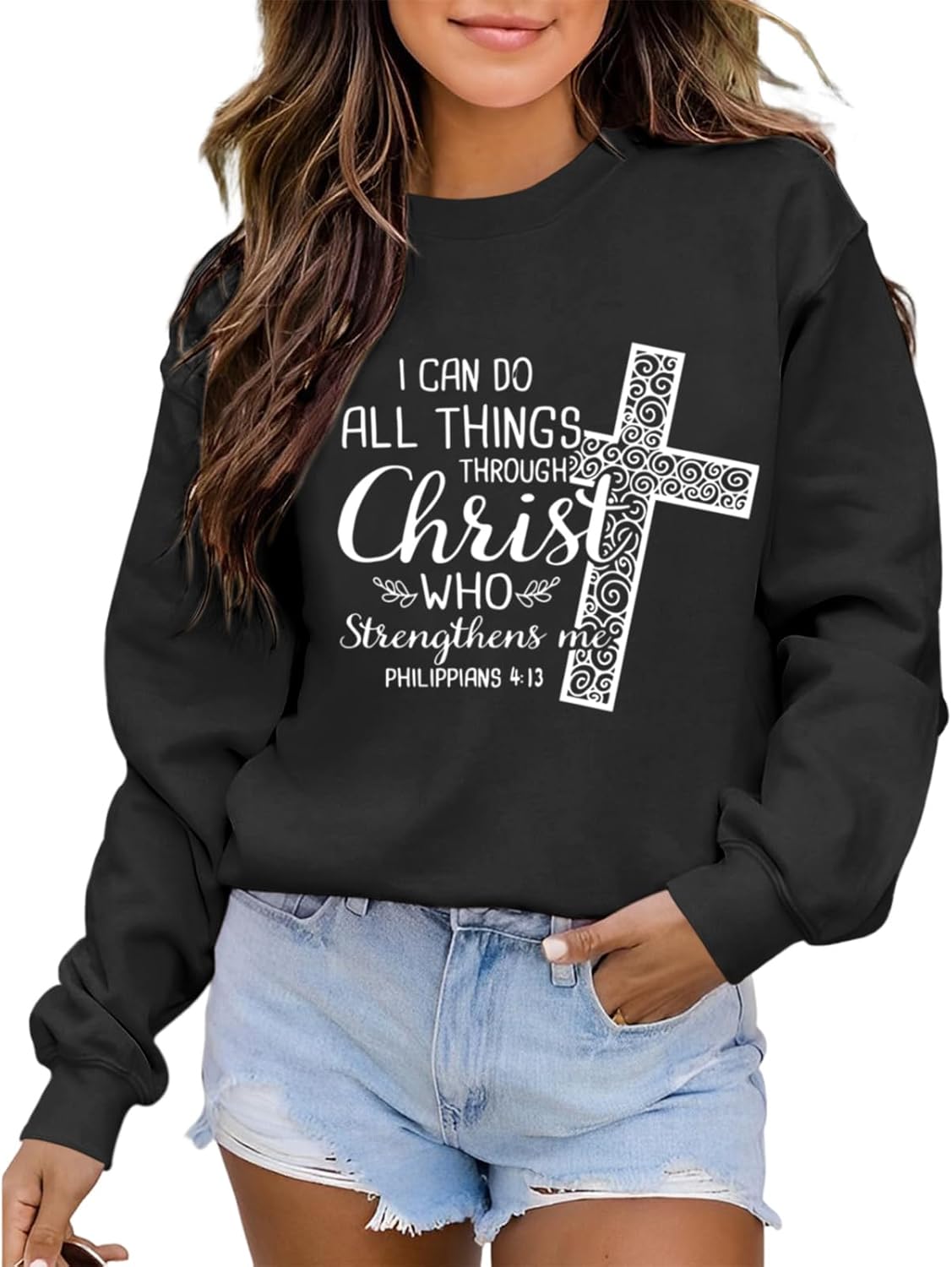 KEEVICI Christian Jesus Sweatshirts For Women Religious Bible Verse Cross Sweatshirt God Hoodie Faith Long Sleeve Shirts