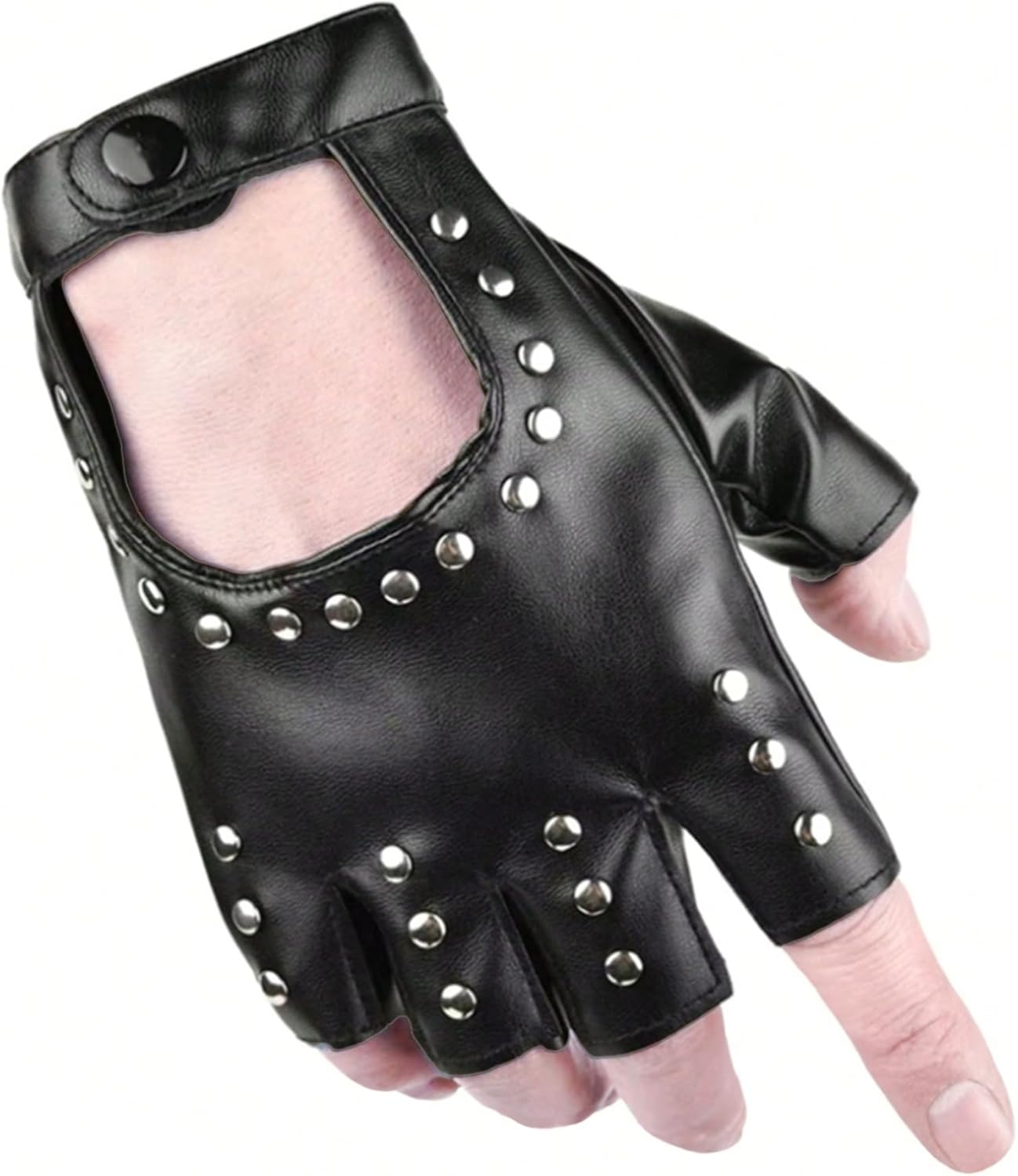 Ammiko Fingerless Gloves for Women PU Faux Leather Driving Cycling Punk Cosplay Costume Halloween Performance Teens