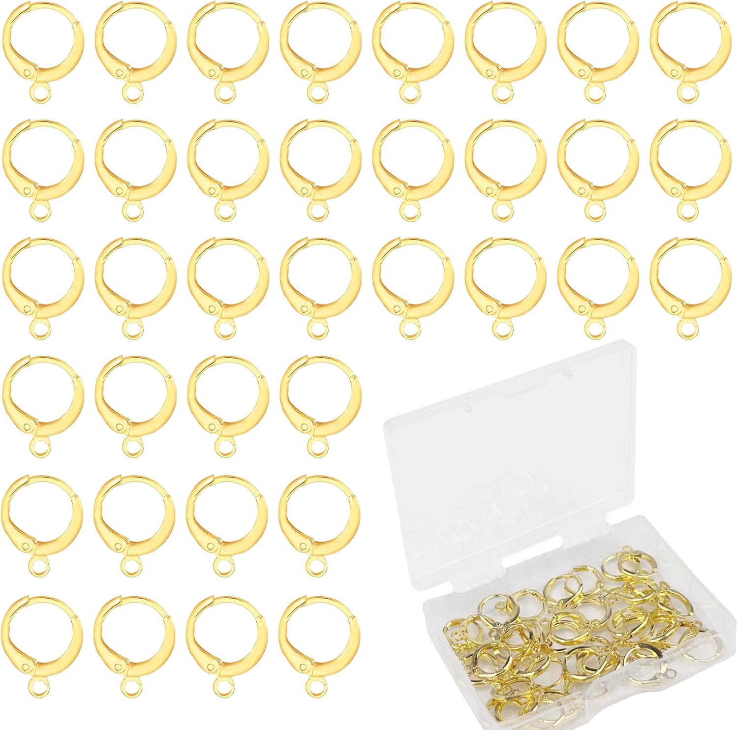 36 PCS Earring Hooks 18K Gold Plated Earring Buckle Lever Back Earring Hooks Gold Huggie Earring Jewelry Making for Women