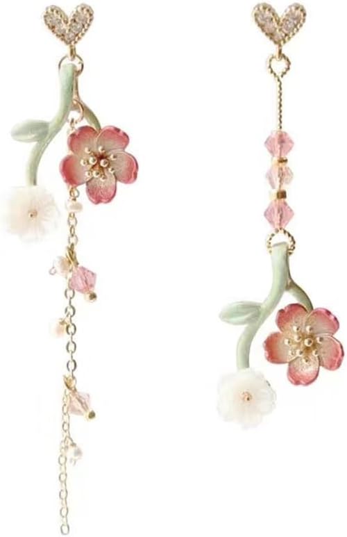 Flower Earrings Wedding Statement for Women Hypoallergenic Sterling Silver Post Crystal Asymmetry Shell Cherry Leaf Flower Tassel Earring Long Dangle Love Heart Earring Birthday Xmas Jewelry Gift Bff
