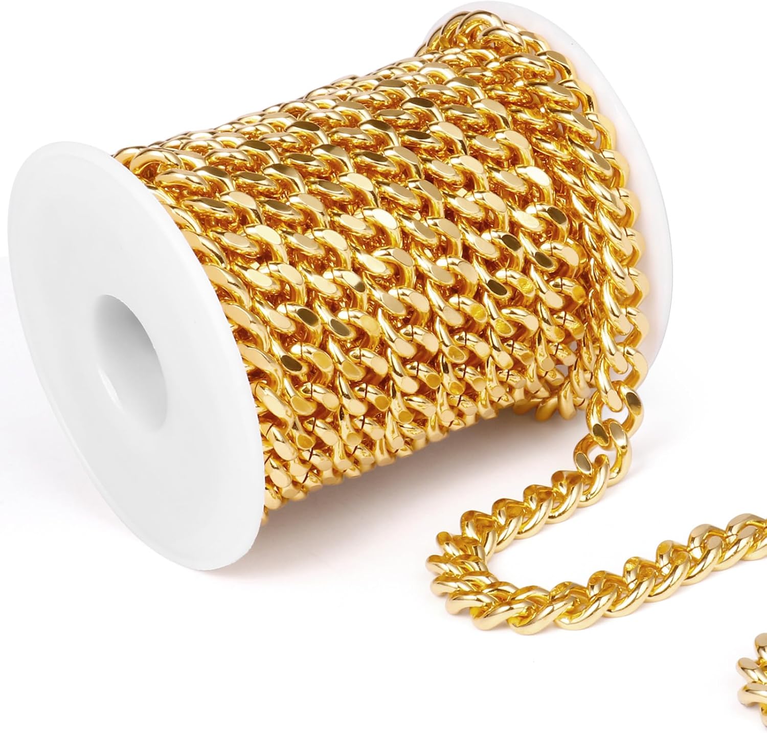 16.5 Feet Stainless Steel Cuban Chains Roll, 9mm Width 18K Gold Plated Diamond-Cut Miami Curb Link Chains Spool Bulk for Jewelry Meking & DIY Craft