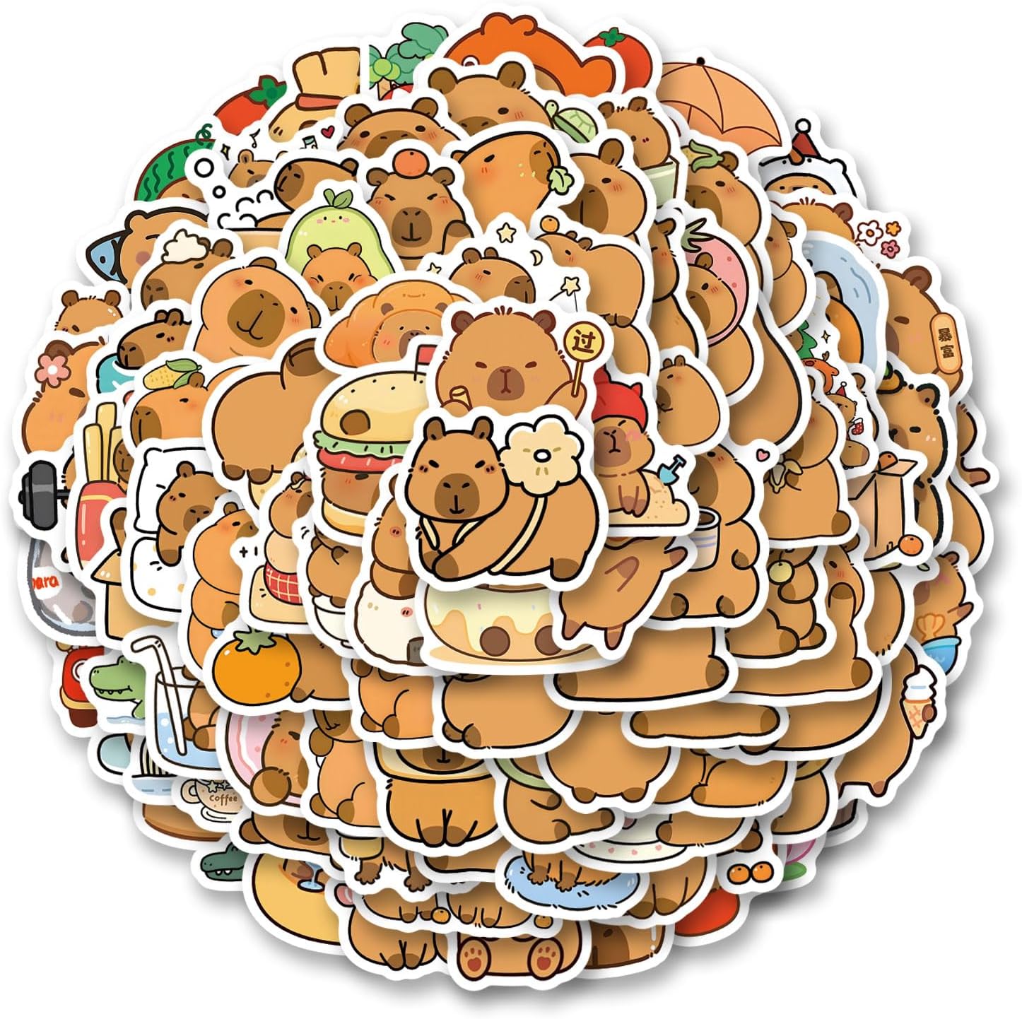 300Pcs Capybara Stickers Cute Cartoon Animal Sticker Kawaii Aesthetics Stickers Pack Vinyl for Laptop, Water Bottle, Skateboard, Scrapbooking, Party Favors