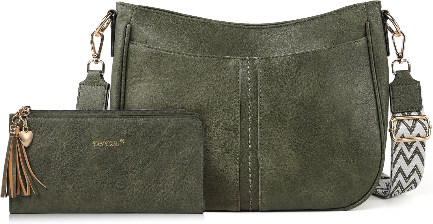 TANTOMI Crossbody Bags for Women Crossbody Purses and Wallet Vegan Leather Women's Shoulder Handbag for Everyday 2 PCS Set