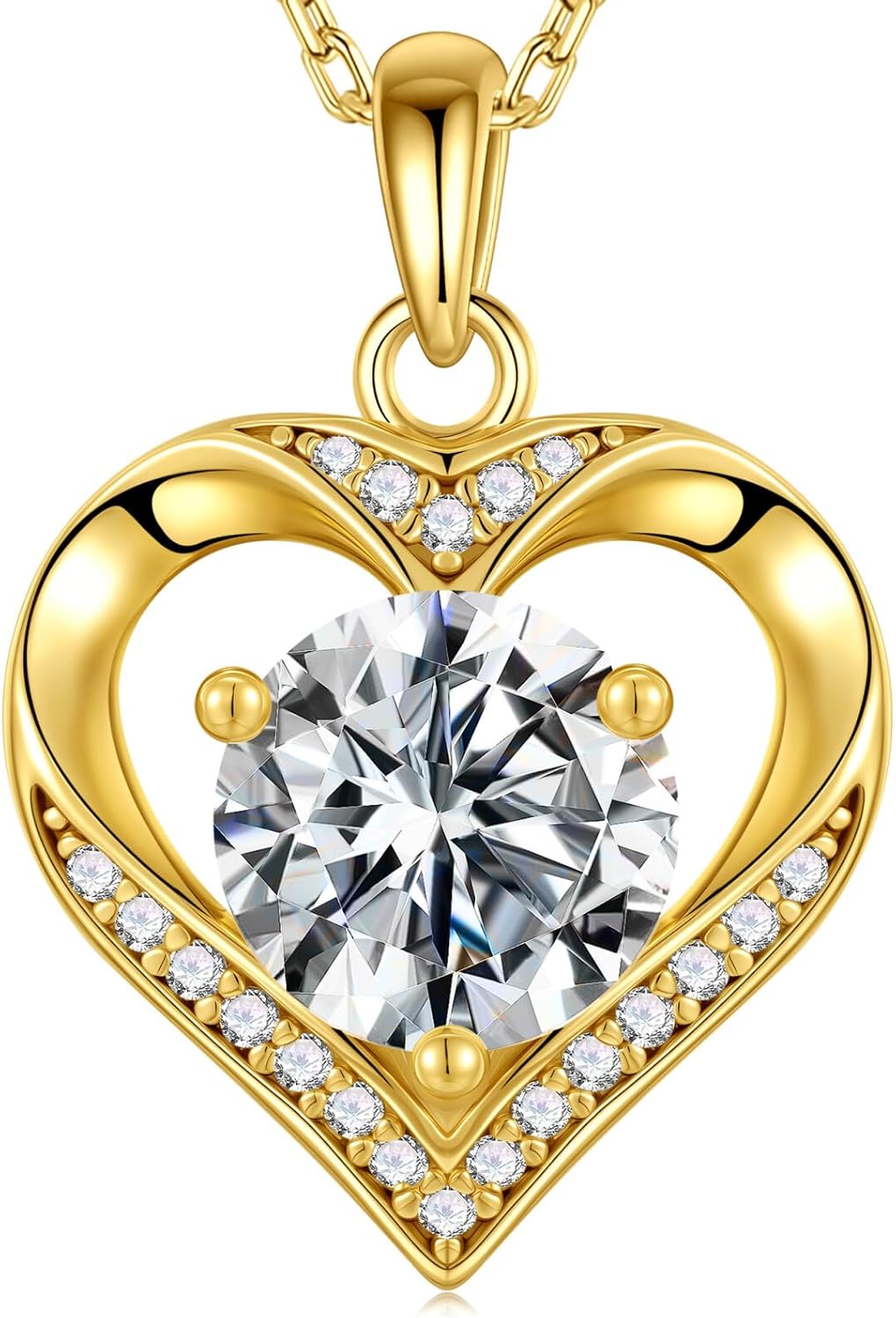 MOOSEA Valentines Day Gifts for Her - 925 Sterling Silver Heart Moissanite Pendant Necklace 1-3 Carat Lab Created Moissanite, Anniversary Birthday Gift for Women Mom Wife Girlfriend