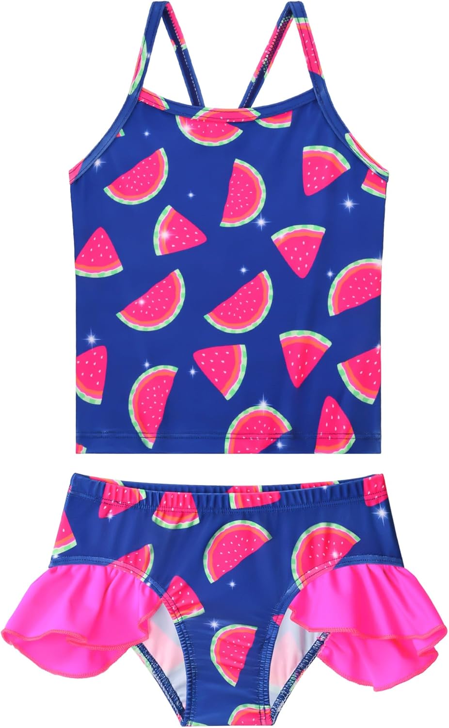 Girls Tankini Swimsuit Two Piece Bathing Suits Set Spaghetti Straps with Ruffled Hem Summer UPF 50+ Bikini Swimwear