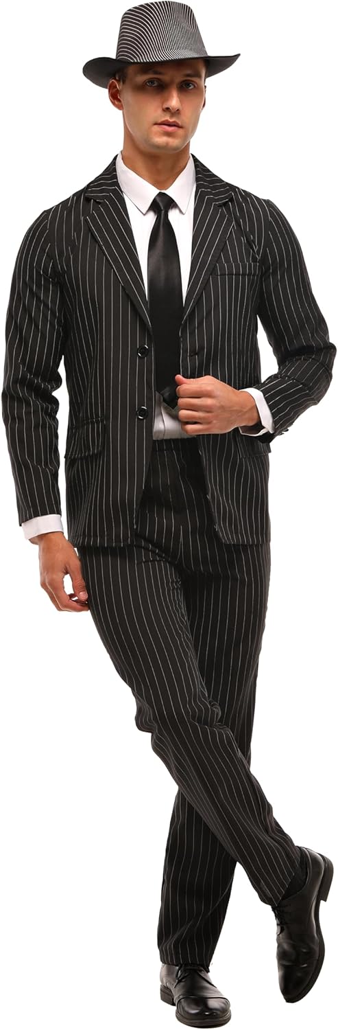 Leadtex 1920's Gangster Costume for Men,Mob Boss Costume for Men,Pinstriped Halloween Suit Include Jacket,Pants and A Tie