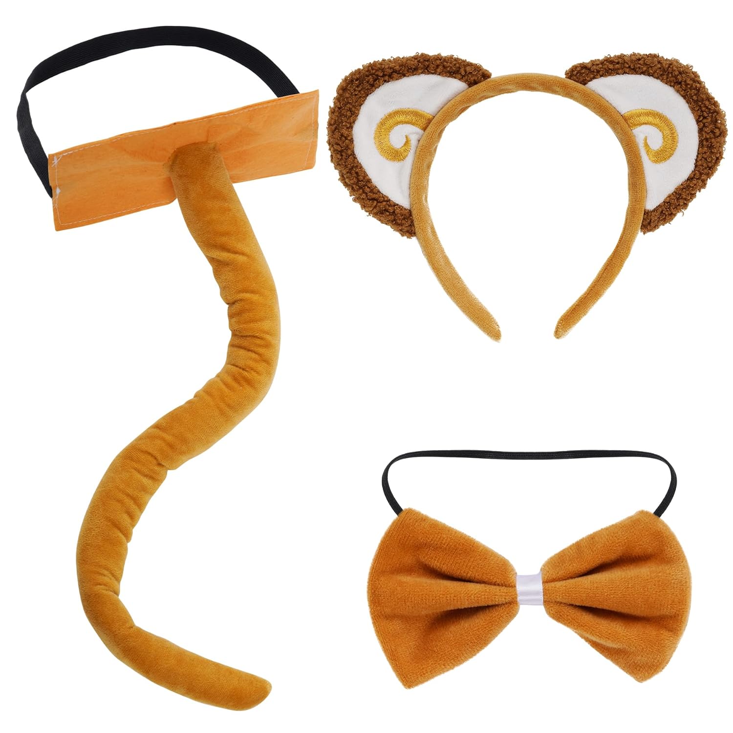 - Quality Details: The monkey ears headband bowtie and tail set is made of short plush and polyester, soft and comfortable to wear. the tail has iron wire inside, so you can adjust the shape you want. the tail and bow tie with elastic band design for convenient wear