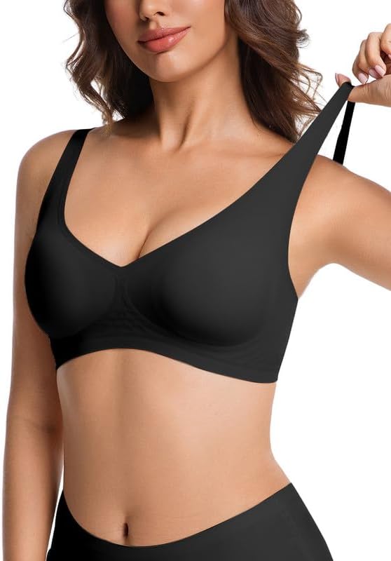 Jelly Wireless Bra, Minimizer Bras for Women Deep V Bra, No Underwire Seamless Full Coverage