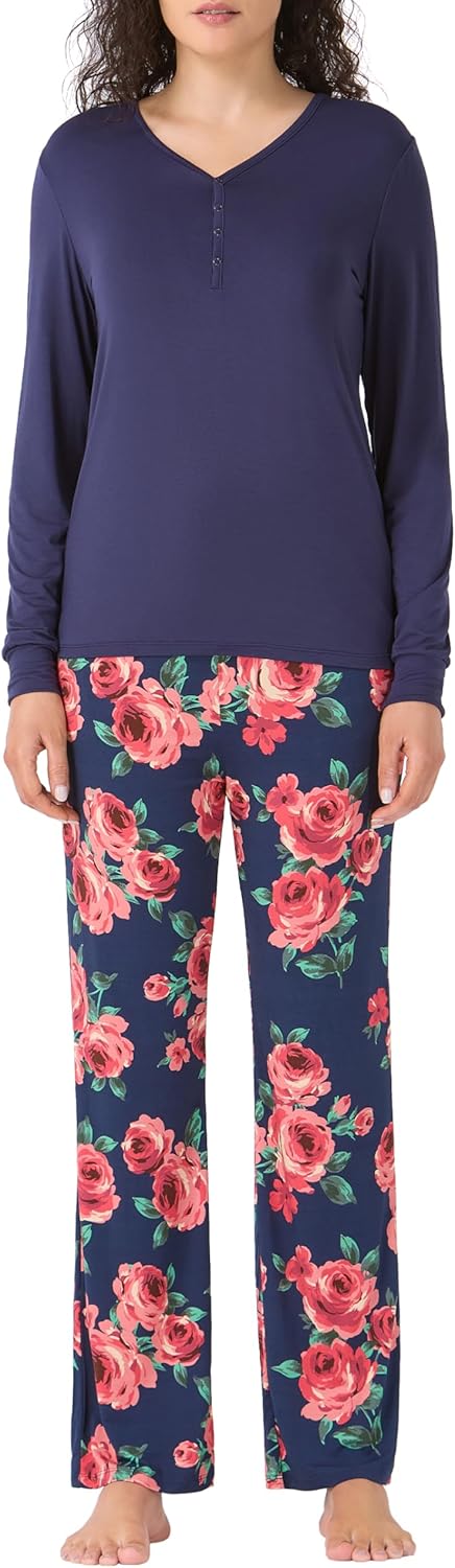 Women's Bamboo Rayon Pajama Set, Long Sleeve Cooling Pjs 2 Piece Soft Loungewear Sleepwear Button Up Lovely Print
