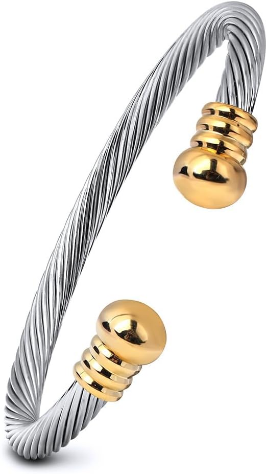 Stainless Steel Twisted Cable Wire Bracelets Adjustable Open Cuff Bangle Bracelet Vintage Jewelry Gift for Women