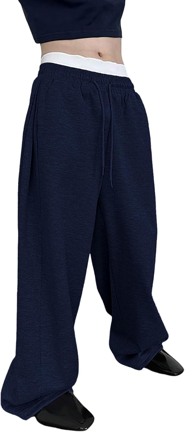 BUXKR Men's Baggy Sweatpants Wide Leg Sweat Pants Fleece Lounge Cotton Loose Elastic Drawstring Waist Pants with Pockets