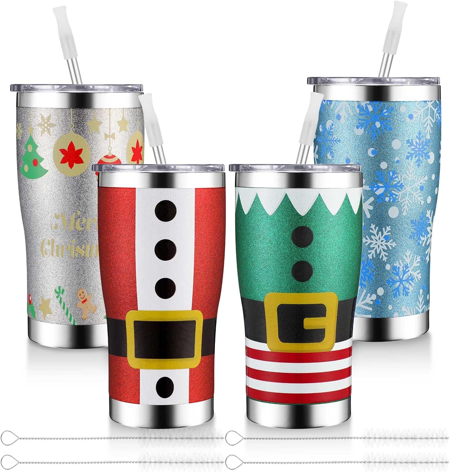 - Generous Packaging: you'll get 4 pack 20-ounce Christmas tumblers, measuring approximately 7 x 3.4 x 3.4 inches/ 17.6 x 8.6 x 8.6 cm; With 4 different patterns, you can easily distinguish between different people's glasses, and they're large enough for everyday use; The package also includes 4 stainless steel straws with lids and 4 straw brushes for easy use and cleaning