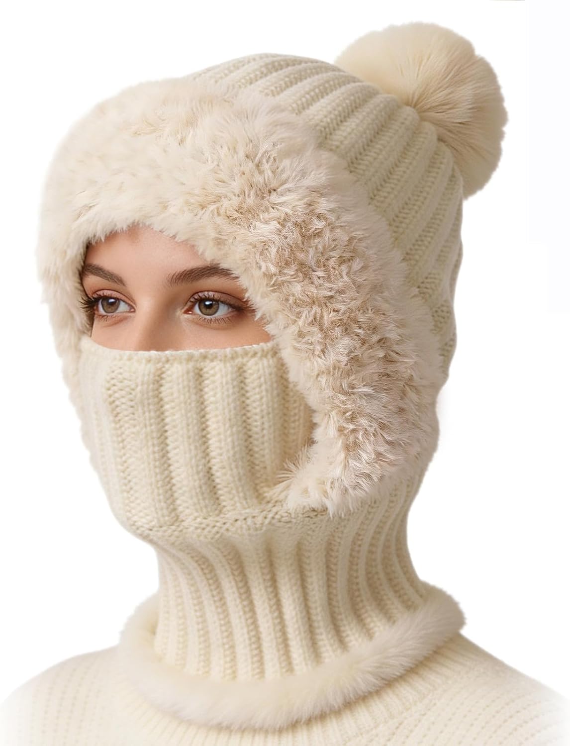 3 in 1 Beanie Hat for Women, Knitted Balaclava Hats,with Scarf and Mask,Face Mask Neck Scarf Set