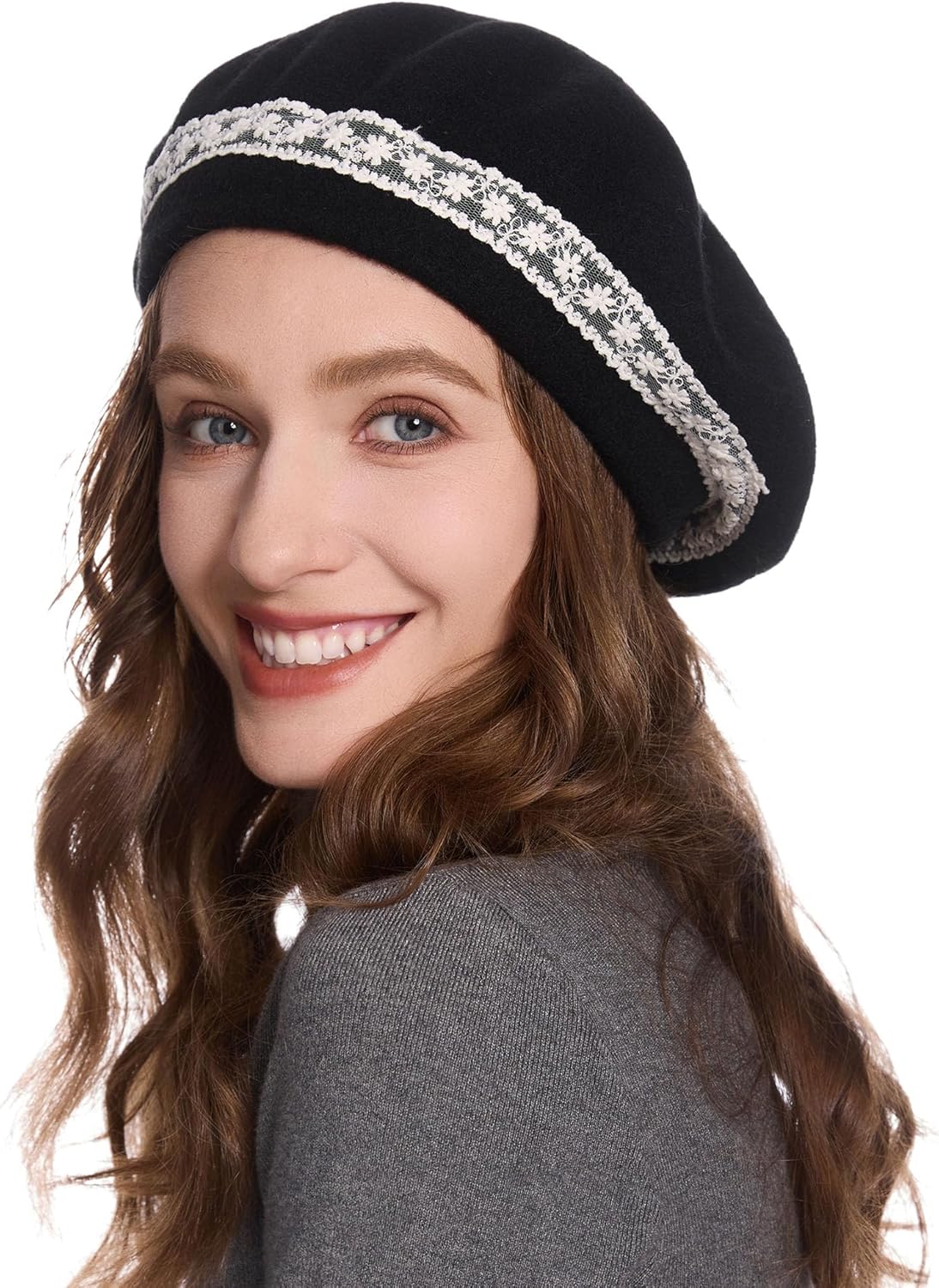 ZLYC Wool French Beret Hat for Women Girls Solid Color Artist Beret Cap