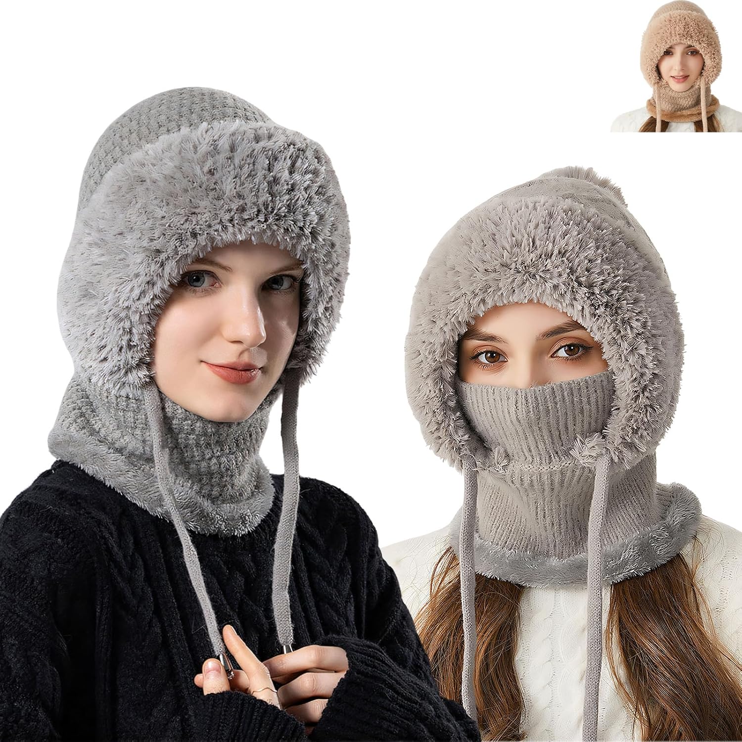 3 in 1 Beanie Hat with Scarf and Mask, Women Balaclava Winter, Warm and Wind-Resistant, Ideal for Outdoor Skiing and Travel
