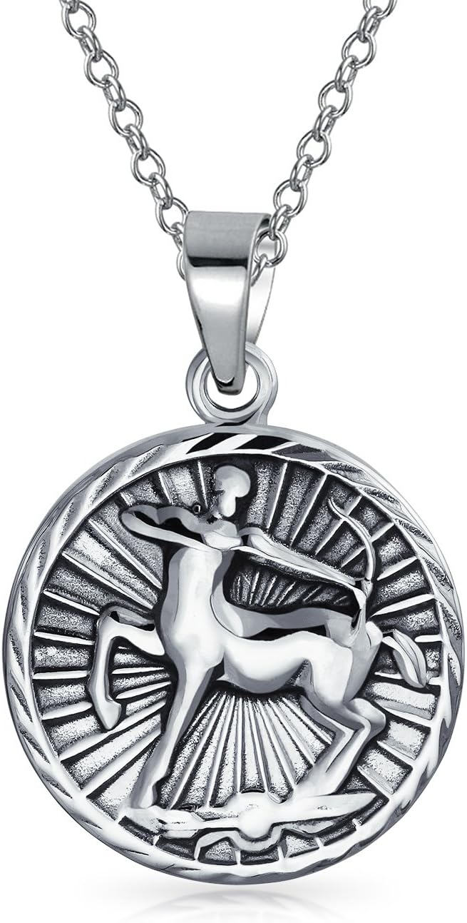 Astrology Horoscope Disc Medallion Pendant Zodiac Necklace For Men Women Antiqued .925 Sterling Silver All Constellation