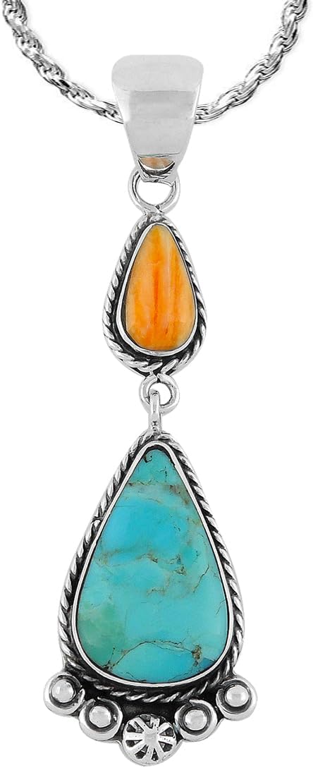 Turquoise Necklace 925 Sterling Silver & Genuine Gemstones Pendant with 20" Chain