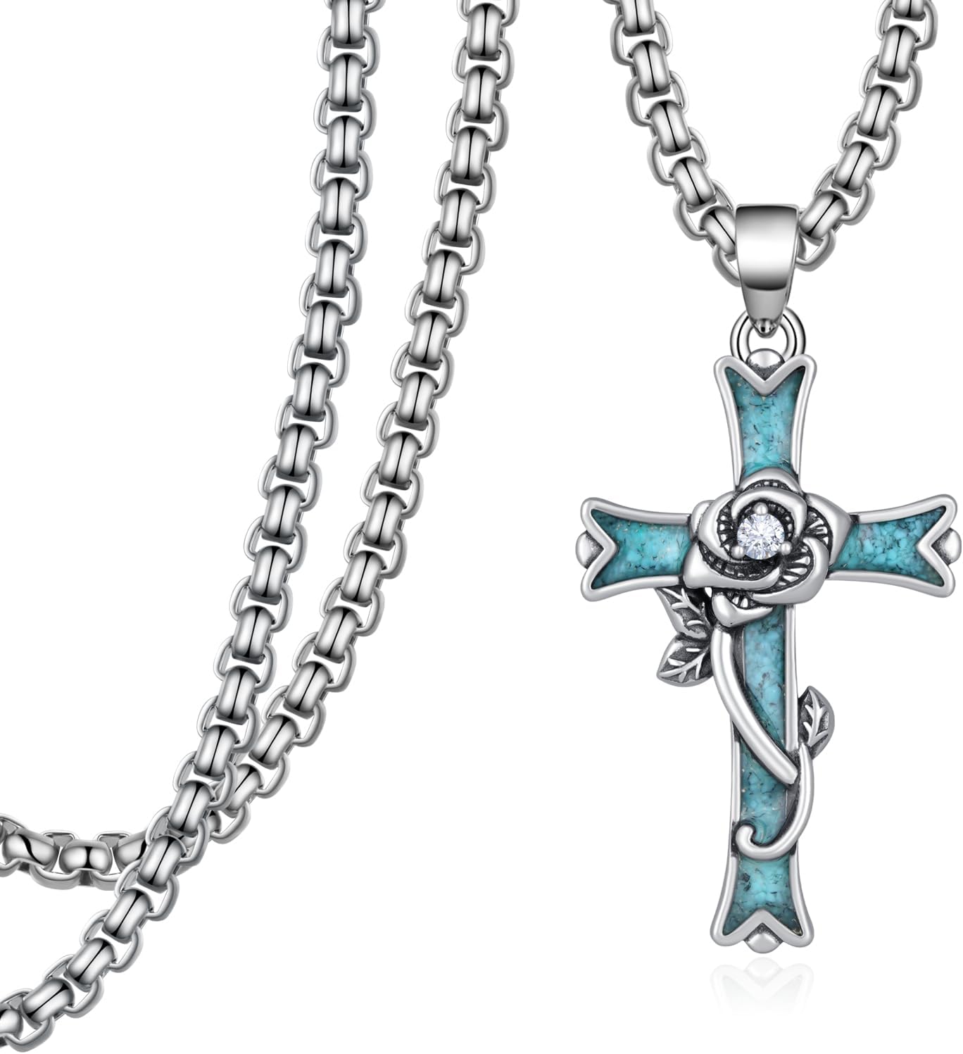 Turquoise Cross Necklace 925 Sterling Silver Cross Pendant Turquoise Jewelry Gifts for Men