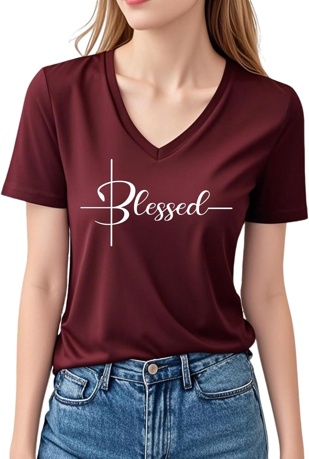 DANVOUY Blessed T-Shirt for Women Cute Graphic Tee Funny Casual V-Neck Tops