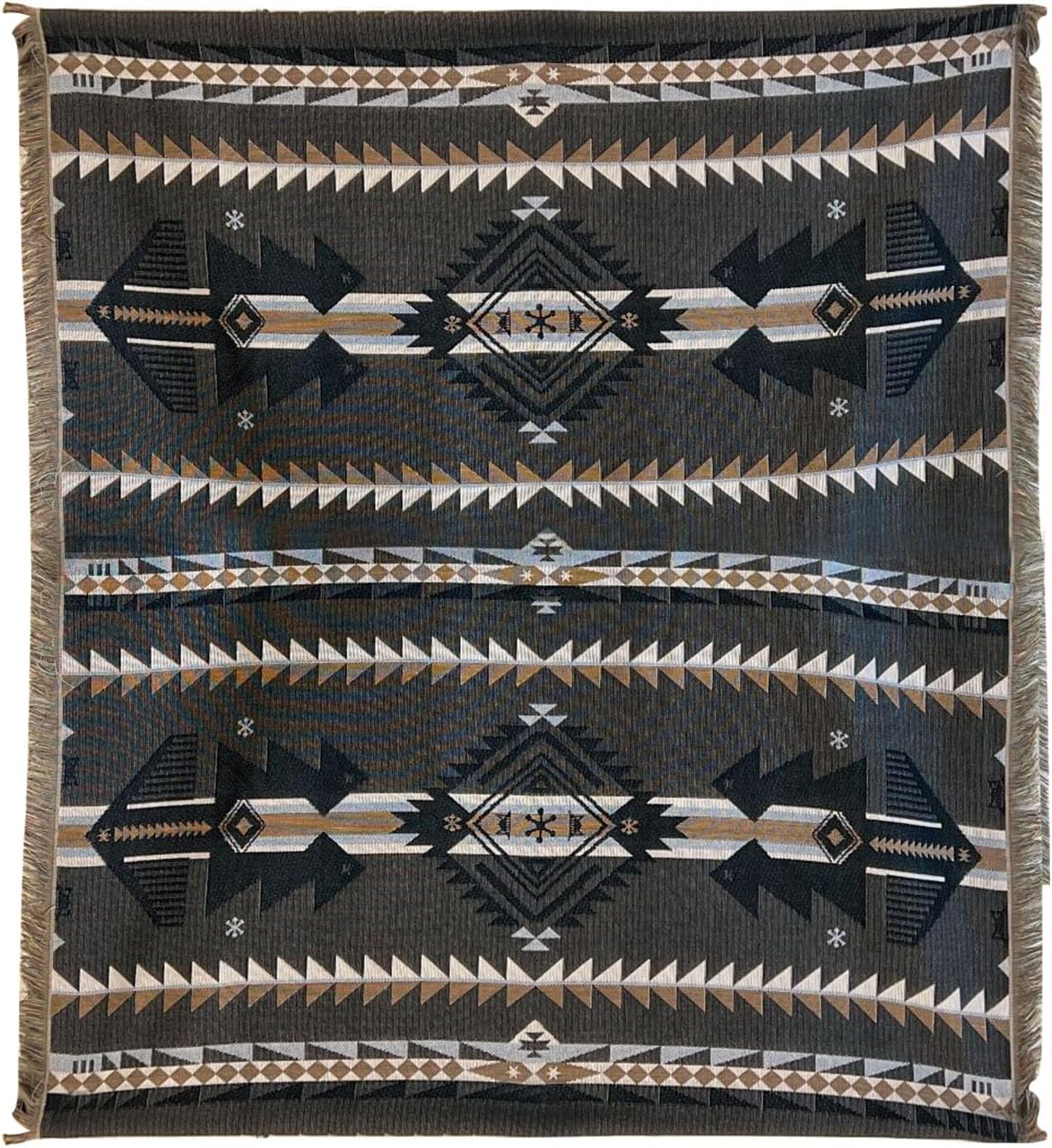 - ETHNIC STYLE: The blanket features interesting geometric patterns that speak of vintage legacy charm, mysterious and enchanting. The Aztec Navajo print ingeniously uses vibrant colors with treacherous patterns and symbols to present a rustic yet sophisticated southwestern tribal ethnic style. The rich colors are alternately woven to add visual layers, full of bohemian romance. The leisurely and cozy fringes enrich the edges and infuse the blanket with the beauty of freedom and spontaneity.