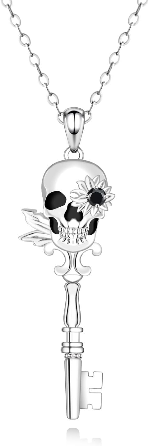 Gothic Skeleton Key Necklace - Silver Vintage Skull Pendant Key Chain Charm Skeleton Key Jewelry Gifts for Women Men