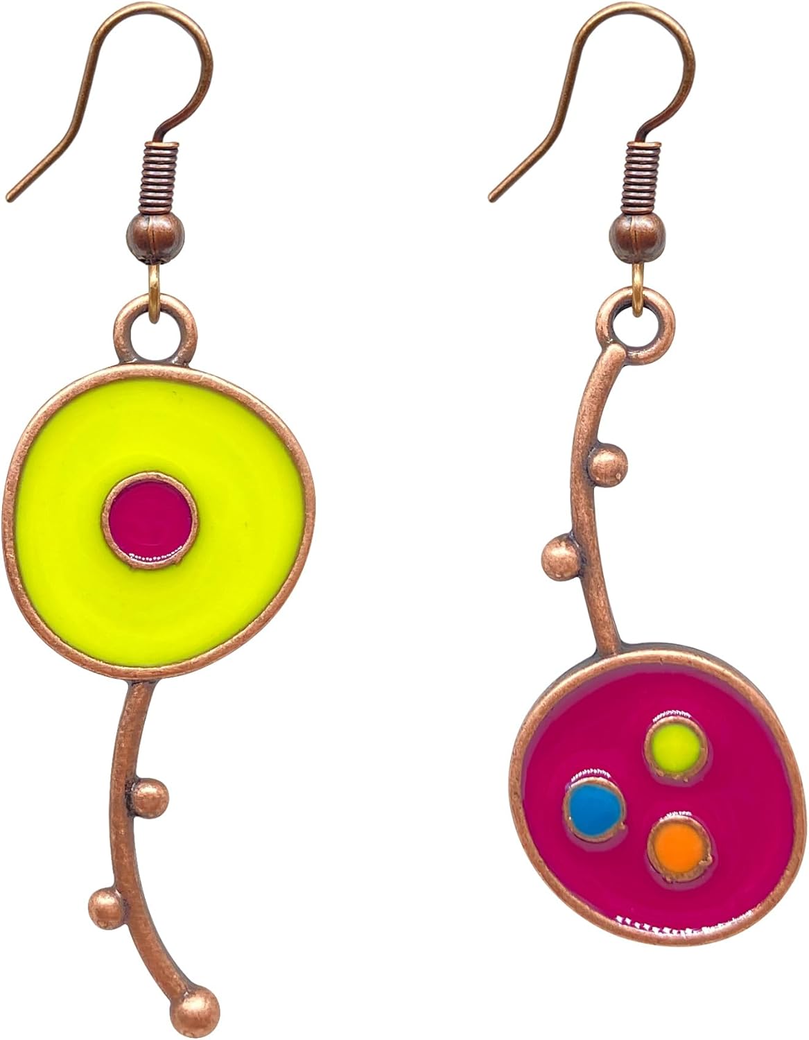 KaFu Bohemian Earrings Dangle Earrings for Women Girls Vintage Ethnic Round Enamel Earrings Handmade Boho Asymmetrical Statement Geometry Earrings Jewelry Gifts
