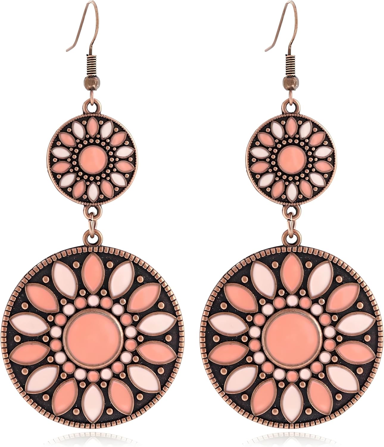 Handmade Boho Earrings for Women Unique Tribal Ethnic Colorful Vintage Antique Enamel Round Statement Earrings Bohemian Retro Jewelry Gifts