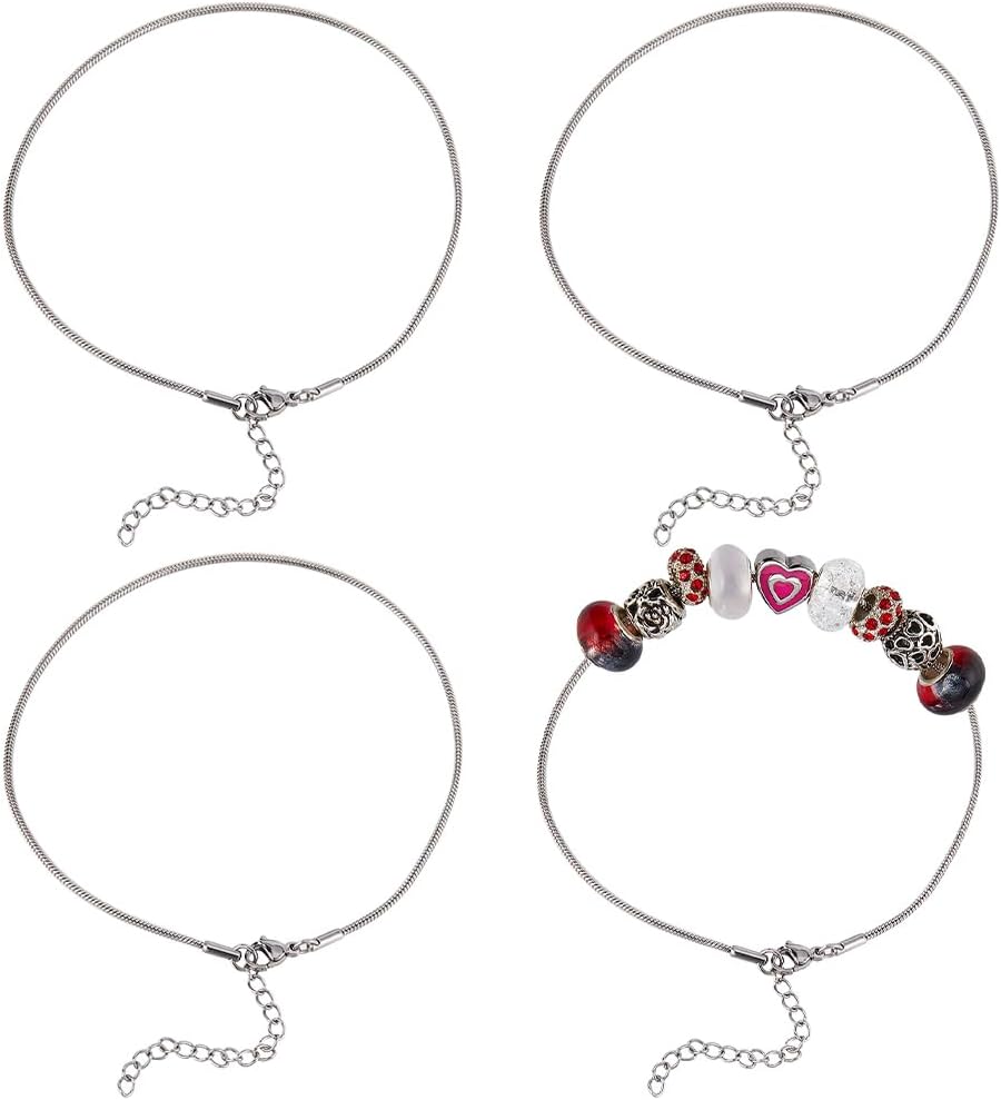 SUNNYCLUE 1 Box 12Pcs Snake Chain Charm Bracelet Silver Charm Bracelets Bulk with Lobster Clasp Stainless Steel Metal Adjustable Snake Chain Bracelet for Jewelry Making Chains Supplies DIY Craft Women