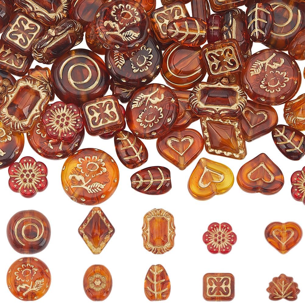 1 Box 10 Styles 100PCS Bohemian Acrylic Beads with Hole Czech Imitation Amber Golden Metal Enlaced Resin Assorted Loose Spacer Bead for Jewelry Making Bracelets Necklace DIY Crafts Supply
