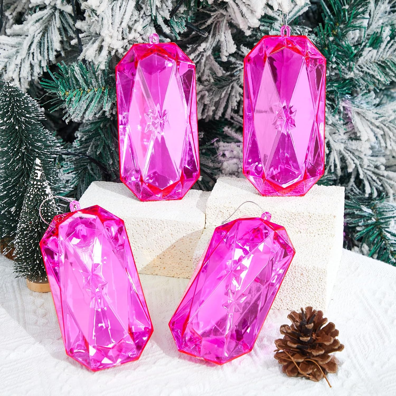 - Rose Red Appearance Design: The Christmas tree Ornaments are rhombus in shape and rose red in appearance design, which is light, bright and elegant. They can reflect light on your Christmas tree and shine beautifully, creating a stunning visual impact. These rose red jewel ornaments will be a fit match for your xmas tree hanging decorations and holiday parties