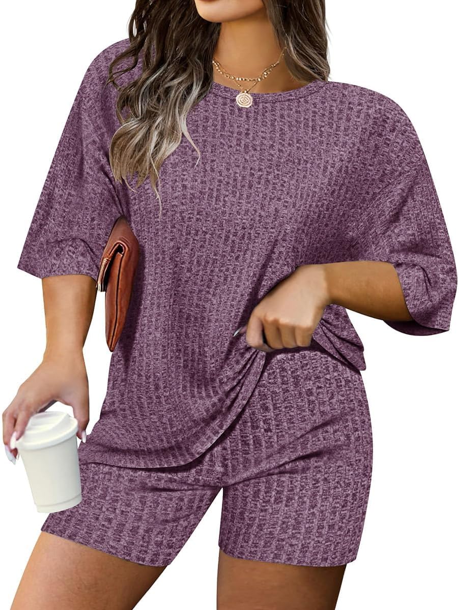 TIYOMI Womens Plus Size 2 Piece Outfits Summer Short Sets Lounge Set Pullover Tops and Shorts Pants with Pocket XL-5XL