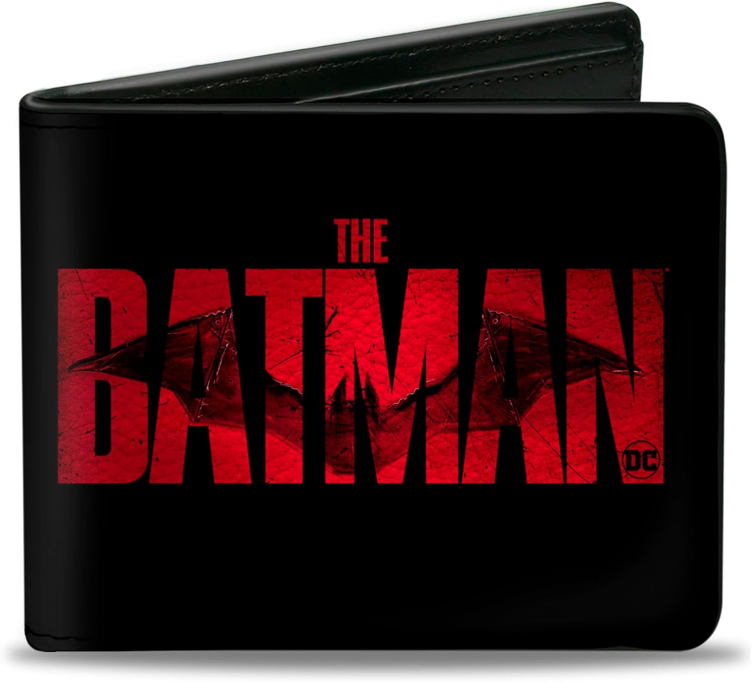 Buckle-Down DC Comics Wallet, Bifold, The Batman Movie Bat Title Weathered Black Red, Vegan Leather