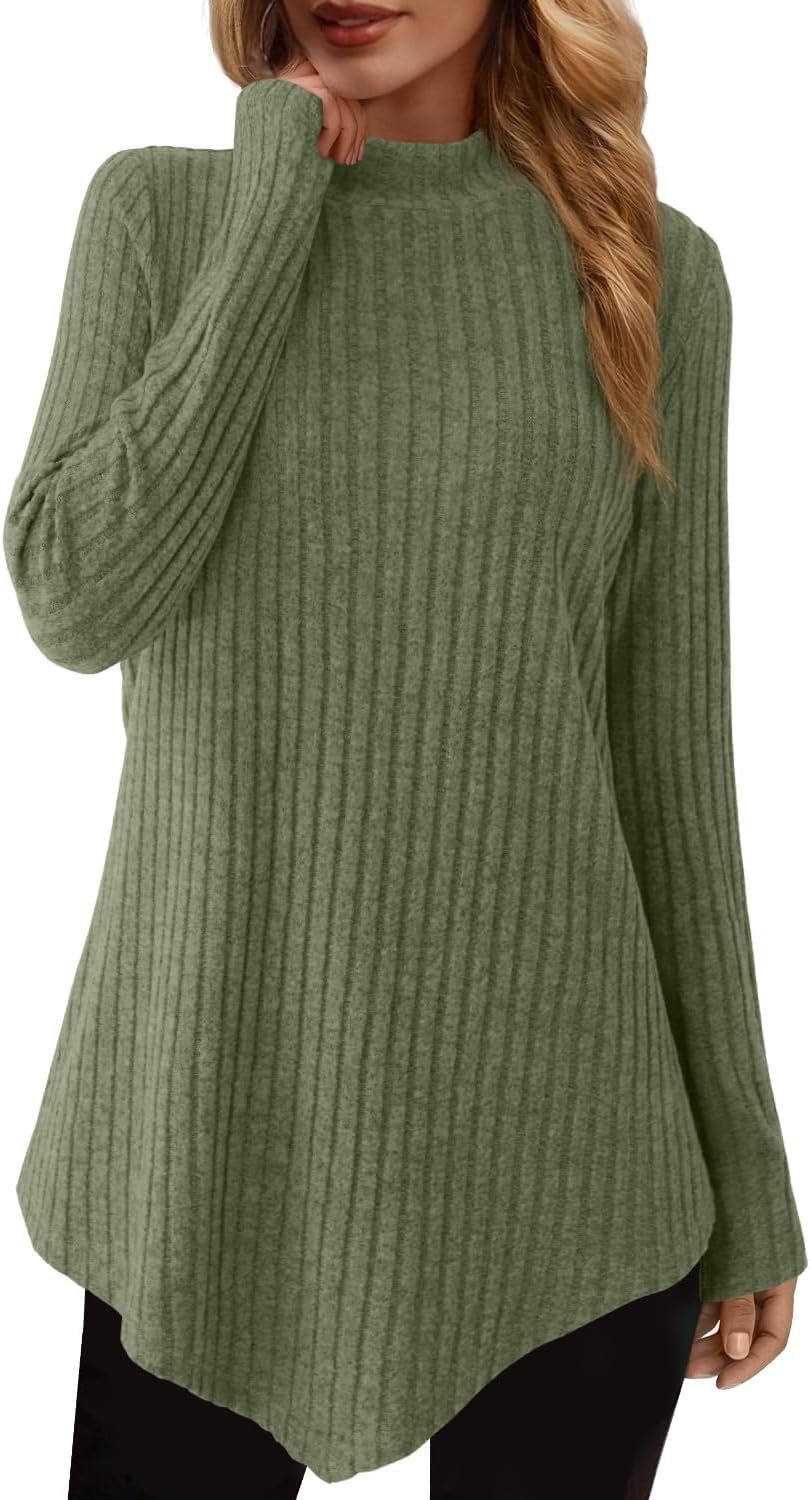 JUSTFASHIONNOW Mock Turtleneck Tops for Women Cozy Sweaters Trendy Long Sleeve Shirts Tunic Tops to Wear with Leggings