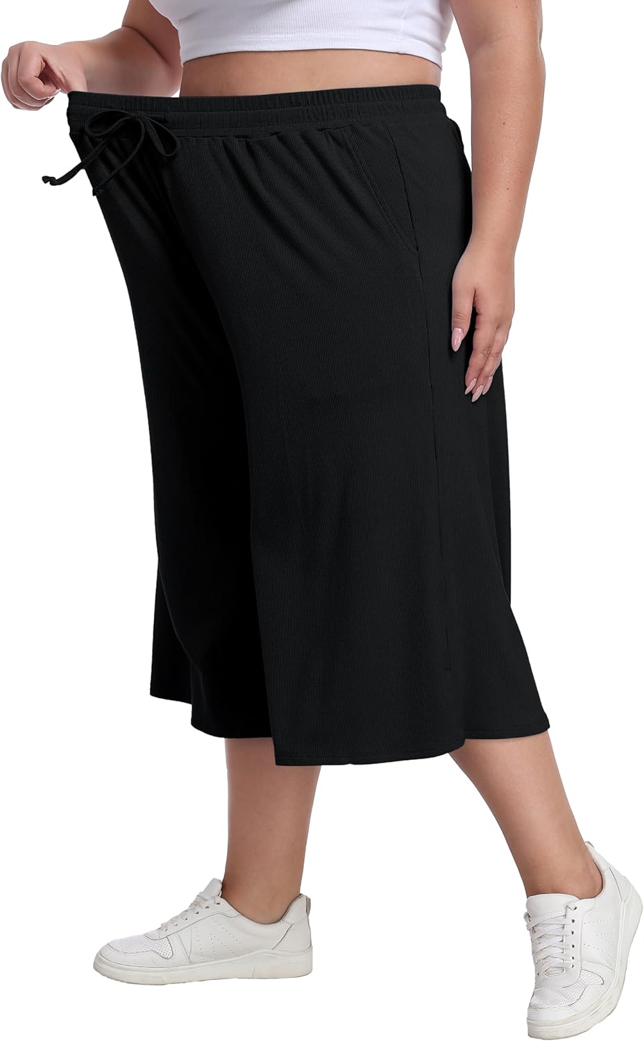 Cheapestbuy Women's Plus Size Wide Leg Capris Summer Palazzo Lounge Cropped Pants Casual Flowy Capri Pants with Pockets