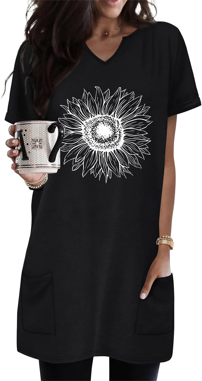 KISSMODA Woman Lightweight Dress with Hood Short Sleeve Summer Loose Pullovers with Pockets Long Tunics Top for Leggings