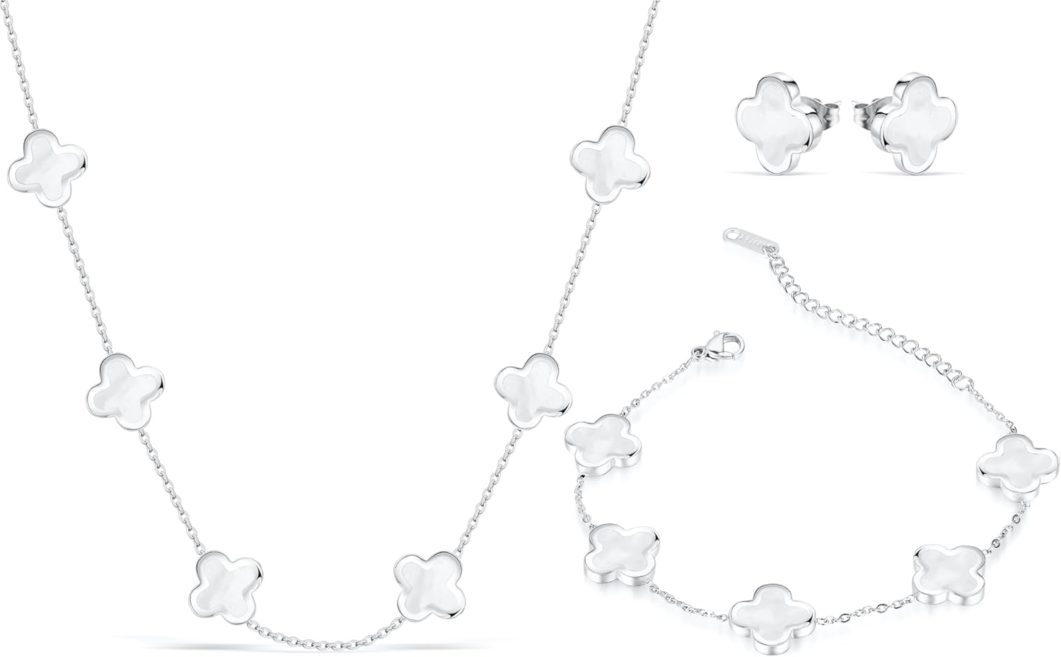SHINYY Four Leaf Clover Necklace Bracelet Earring Set for Women | 18K Gold Plated 4 Leaf Lucky Jewelry