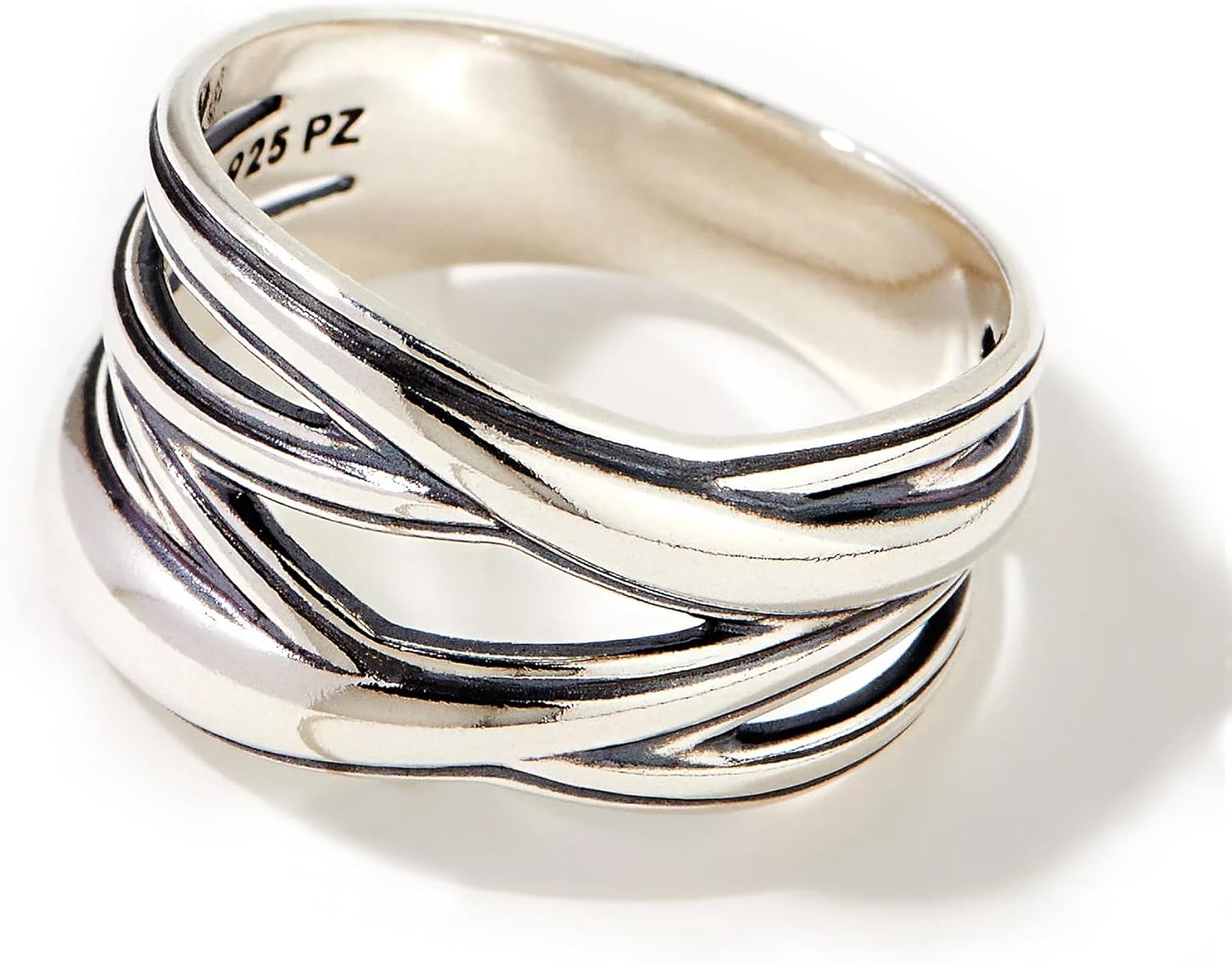 Paz Creations 925 Sterling Silver Criss Cross Statement Ring For Women, Artisan Handcrafted Designer with 1 Year Warranty, Silver/Gold Plated