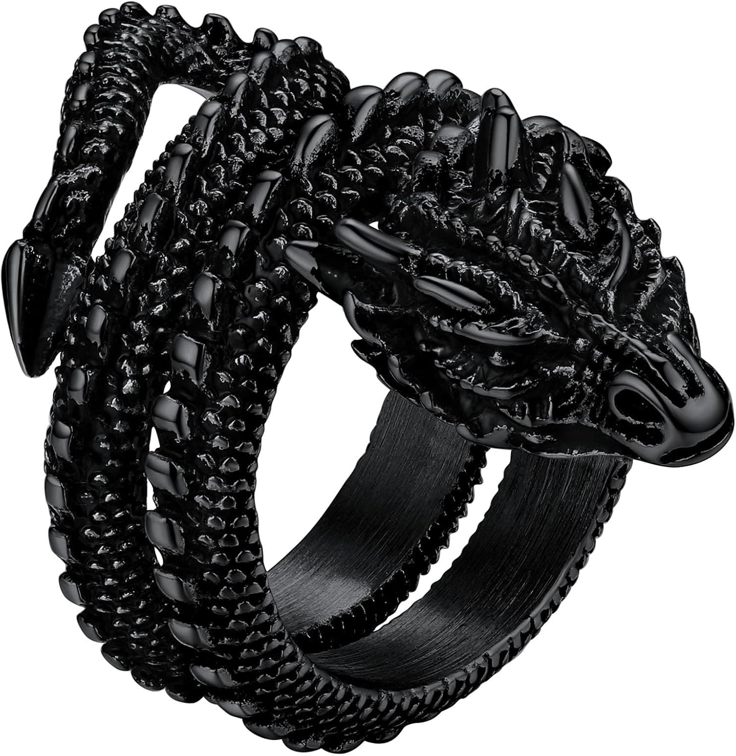 FaithHeart Norse Viking Jewelry Mens Stainless Steel Vikings Thor's Hammer/Wolf Head Ring Valknut Warrior's Gothic Jewelry-Personalized Engrave