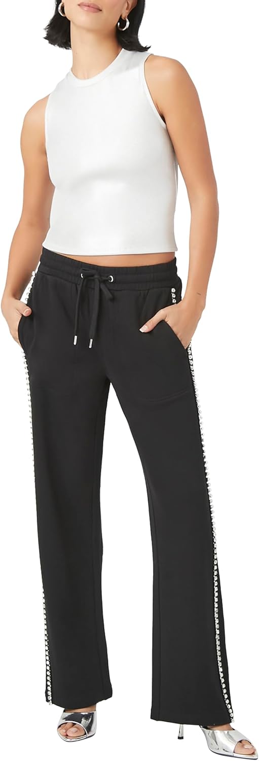 Forever 21 Womens French Terry Rhinestone Wide-Leg Pants