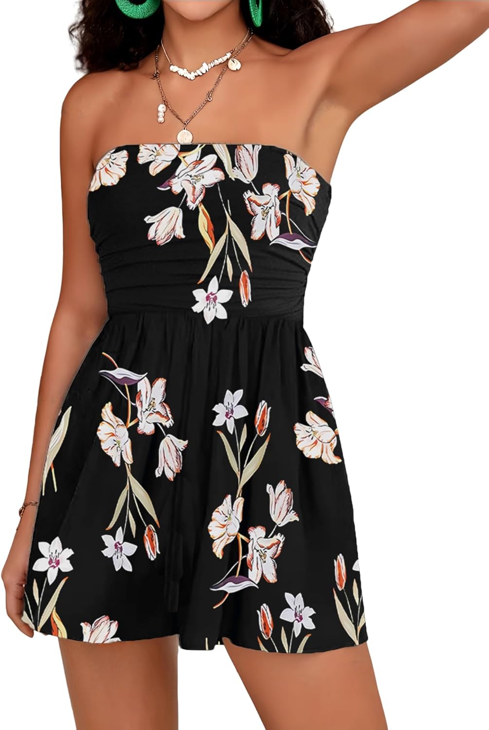 Women Summer Casual Strapless Rompers Tube Top Shorts Jumpsuit Sleeveless Off Shoulder Sexy Beach Romper with Pocket
