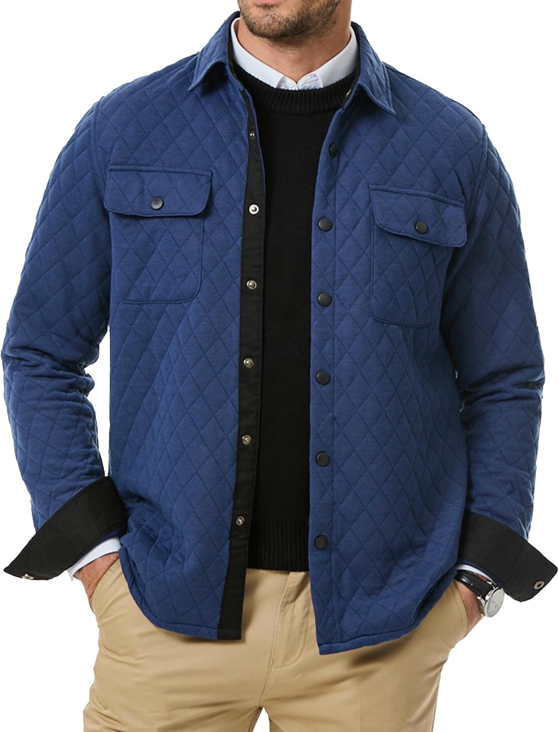 JMIERR Mens Quilted Shirt Jackets Casual Long Sleeve Snap Button Down Shirts with Pockets