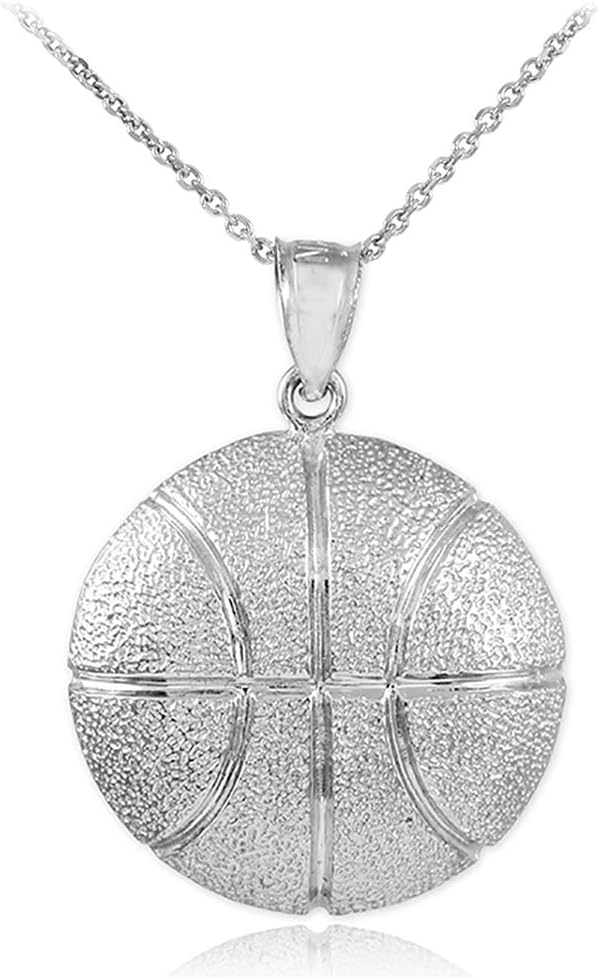 Solid 925 Sterling Silver Sports Charm Hammered Basketball Pendant Necklace