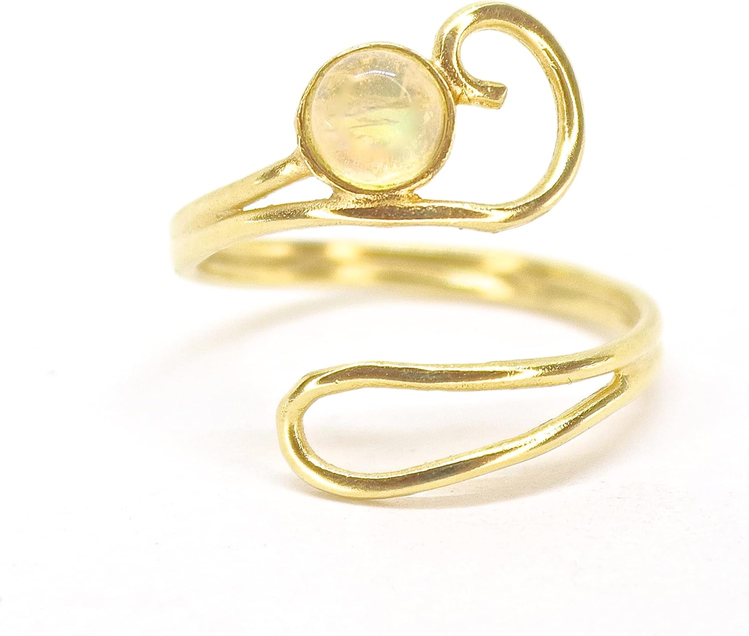 Moonstone 14k Gold plating open ring for Women, Wrap Adjustable ring size 4,5,6,7,8,9