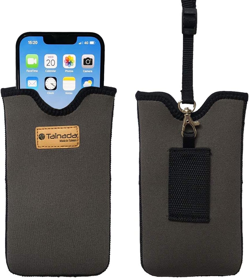 Tainada Neoprene Shockproof Cell Phone Sleeve Pouch Carrying Case for Men Women w/Neck Lanyard, Belt Loop Holster for iPhone 17/16 Pro Max, Air, 16 Plus, 16e, Samsung S25+, S24, A56, Z Fold7 (Gray)