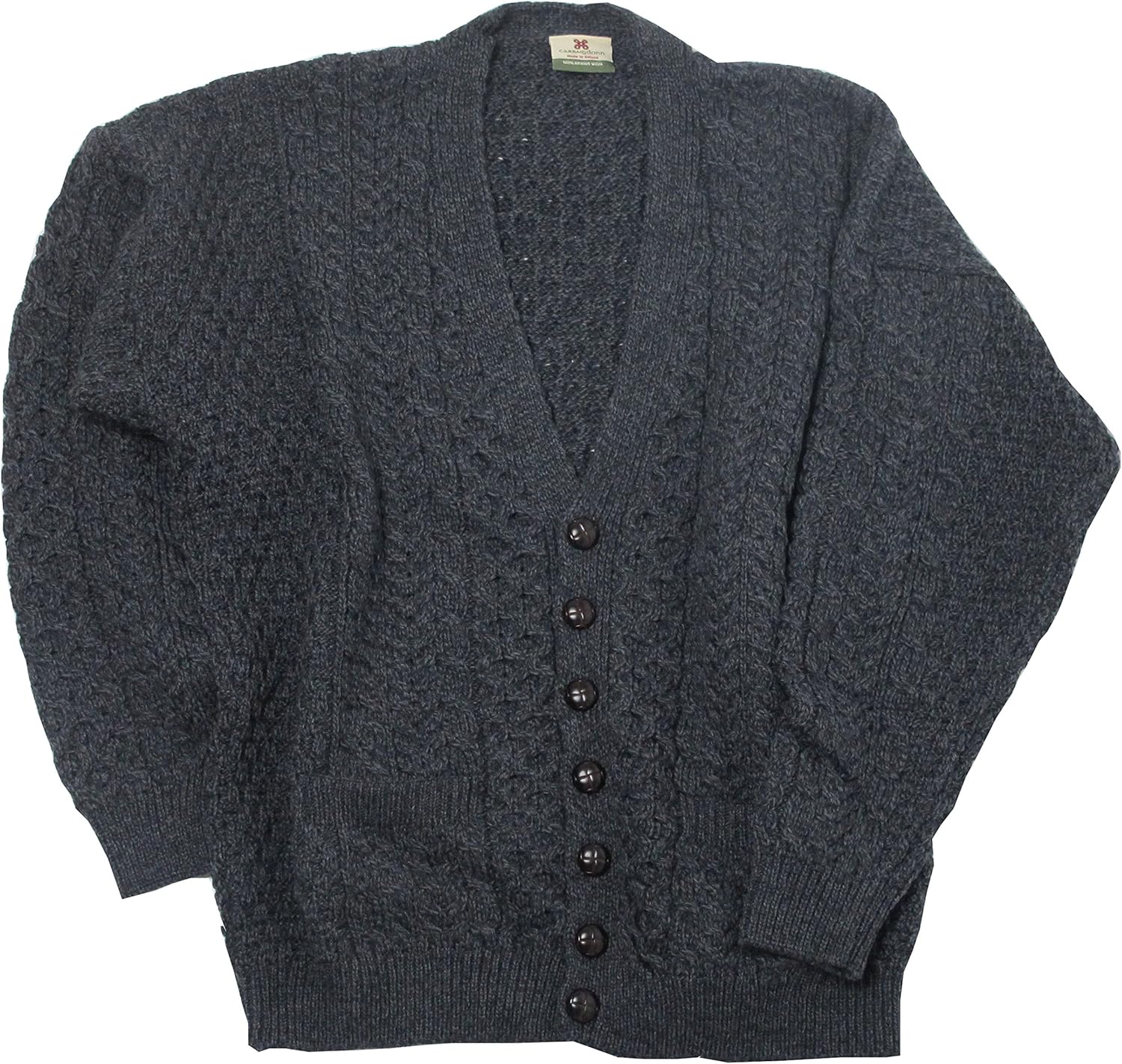 SAOL 100% Merino Wool Men's Aran Cable Knit Shawl Collar Casual Irish Cardigan with Buttons and Pockets