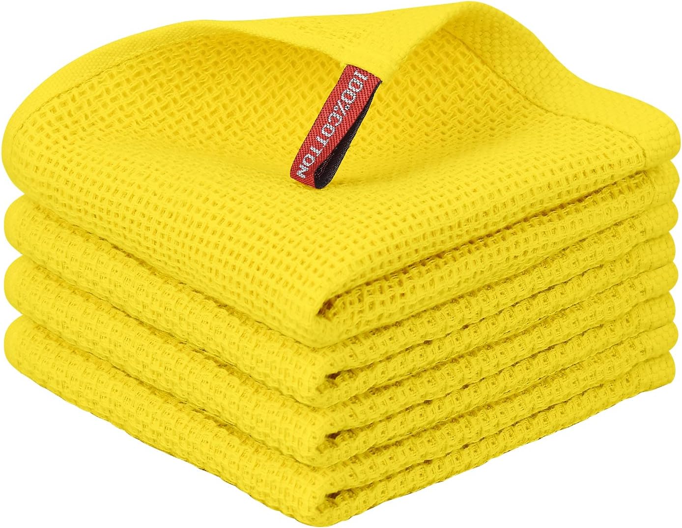 Nialnant 4 Pack Yellow Kitchen Dish Towels, 100% Cotton Waffle Weave Kitchen Dish Cloths for Washing Dishes, Soft Absorbent Dish Rags, Quick Drying Cleaning Rags - 12x12 in