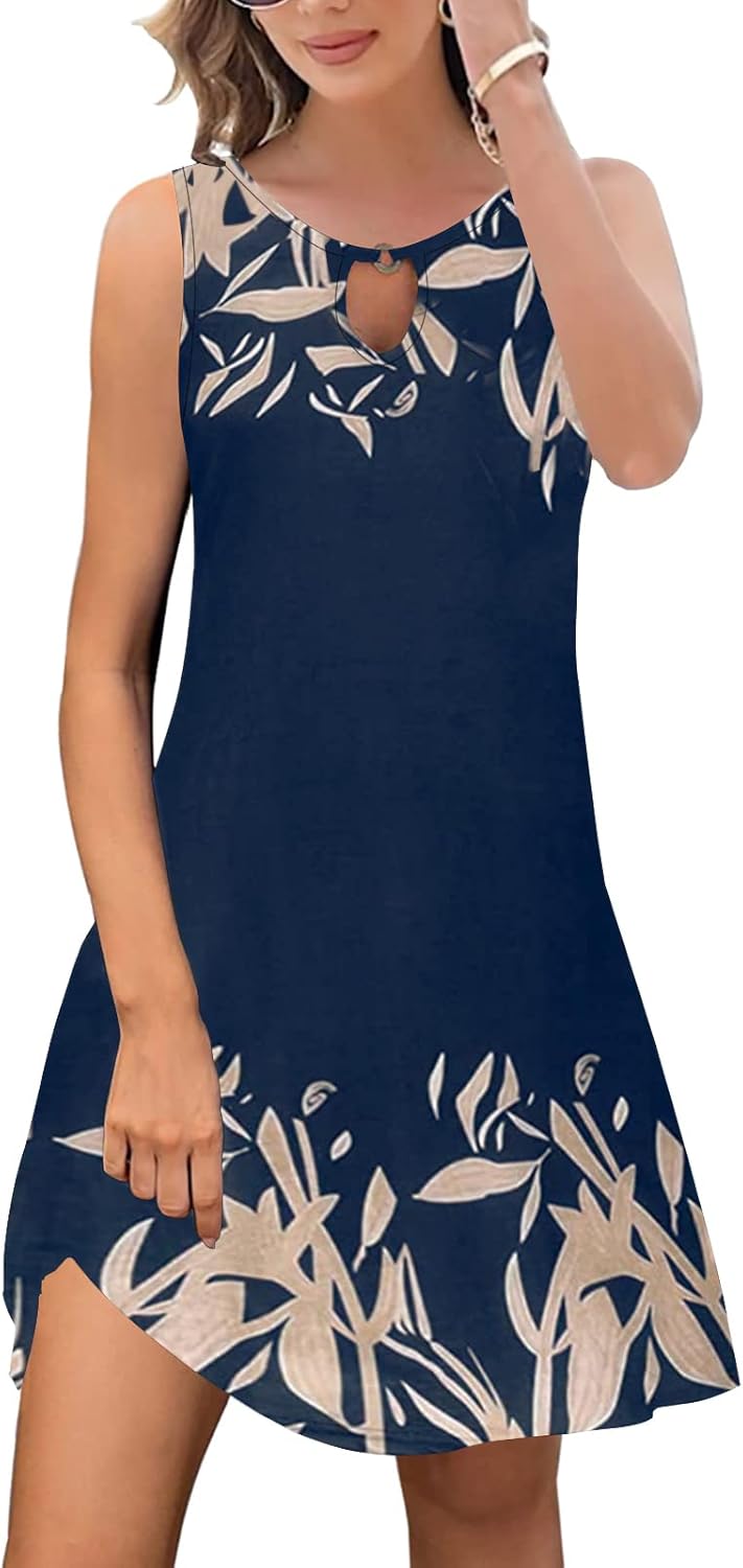 ETCYY Summer Dresses for Women 2026 Trendy Boho Floral Print Beach Cover Up Casual Spring Sleeveless Sundresses