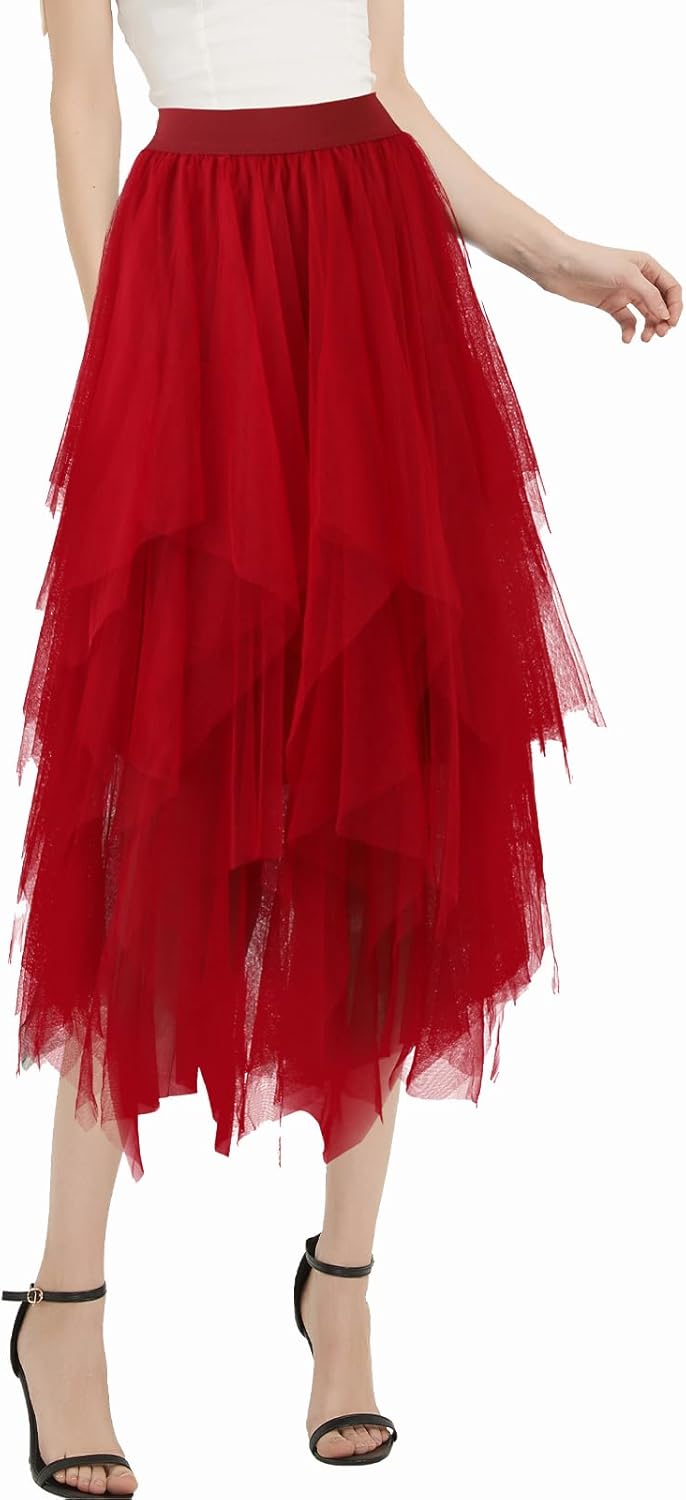Soudittur Tulle Skirt for Women Girls Multi-Layered Skirt Mesh Midi Skirts for Daily Wear, Party, Halloween