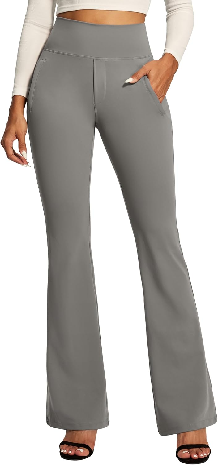IUGA Stretchy Dress Pants Women High Waist Work Pants Business Casual Bootcut Slacks Pull On Trousers with Zipper Pockets